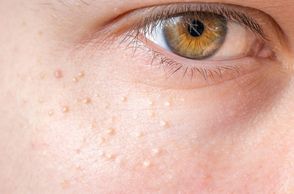 A milium cyst is a small, white bump that typically appears on the nose and cheeks. These cysts are often found in groups. Multiple cysts are called milia. Milia occur when keratin becomes trapped beneath the surface of the skin. Treating and removing these is an easy process.